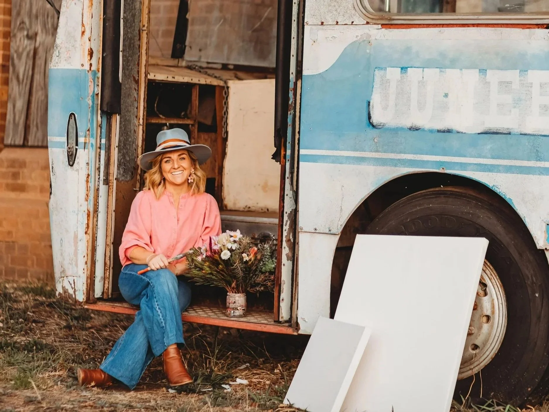 I am a Riverina Artist based in Wagga Wagga, most commonly known as Bec- Rebecca if I’m in trouble- mum to four wonderfully loud boys, wife, nurse, runner and the artist usually found with paint in her hair and coffee going cold nearby. If it’s chaotic, sticky and slightly wild… it probably lives at my house - and I love it!